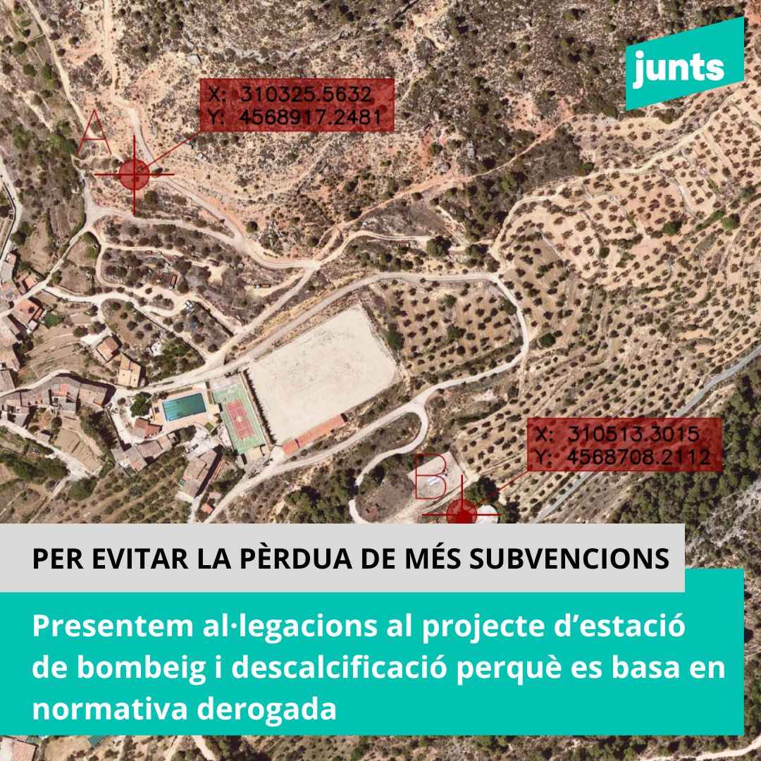Des del Grup Municipal de Junts per Catalunya hem presentat una sèrie d’al·legacions al projecte de la nova connexió d’aigua i la planta de descalcificació per una qüestió de responsabilitat i supervivència econòmica del nostre poble. El motiu principal és alarmant: el projecte presentat per l’Ajuntament es basa en una llei que fa tres anys…