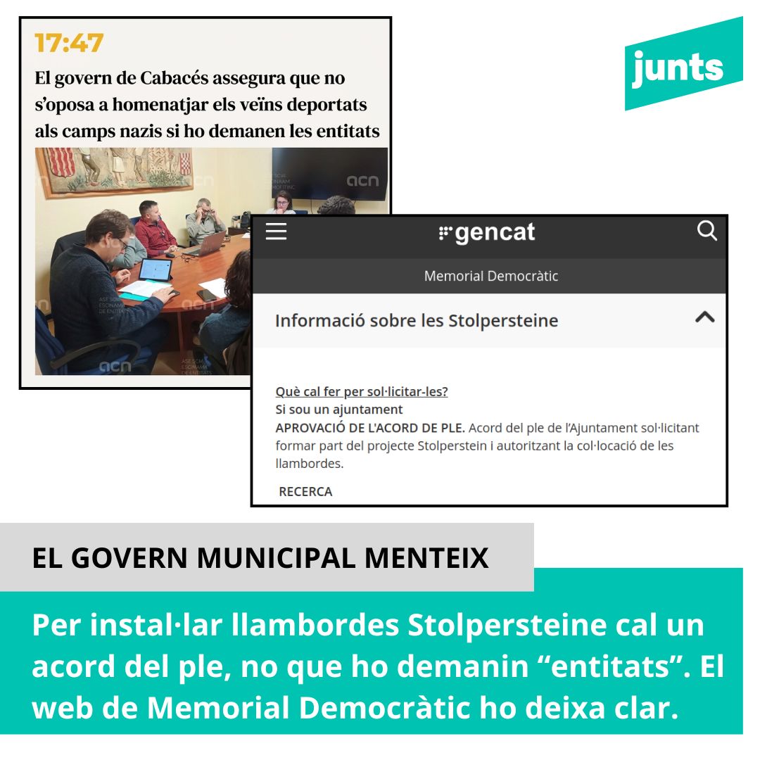 Ahir, en declaracions a l’Agència Catalana de Notícies, el govern municipal va dir que «no s’oposa a homenatjar els veïns deportats als camps nazis si ho demanen les entitats». També va afirmar que «no cal que s’aprovi cap acord en el ple per tirar endavant la instal·lació de les llambordes». Això és mentida, i es…