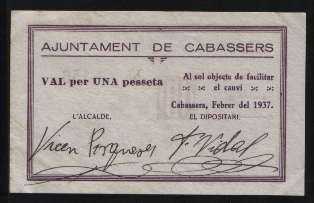 Vicent Porqueres Argany fou un destacat republicà i catalanista de Cabassers, militant d’ERC. L’abril de 1931 la seva signatura apareix en qualitat de testimoni a l’acta de proclamació de la II República a l’Ajuntament de Cabassers. L’octubre de1934 fou el president del Comitè Revolucionari que proclamà l’Estat Català al municipi. A causa d’això patí un consell de guerra que el condemnà a un any de presó, que va complir al vapor Manuel Arnús, ancorat al port de Tarragona. L’octubre de 1936 fou nomenat alcalde de Cabassers, i sota el seu mandat el consistori va emetre moneda local fraccionària el febrer de 1937, que ha esdevingut una de les icones dels anys de la guerra al municipi.