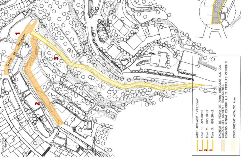 -Vam preguntar quina justificació té l’obra prevista per obrir dos carrers nous que comuniquin amb el Patiet, un des de la Font de Baix (expropiant part dels horts que hi ha just a sobre de la font i fins a l’inici del barranc) i l’altre del Patiet al Camí Nou, passant per l’antic camí de Cartoixa i expropiant part dels bancals del Freginal. La resposta que ens van donar era que es tractava d’un projecte ideat feia anys per donar una sortida al Patiet. Aquest projecte està previst actualment que es dugui a terme el 2028 i que es financiï amb el Pla Únic d’Obres i Serveis de Catalunya.